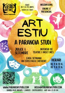 Presencial a Paranoia Studi -Racó d’expressió- de dilluns a divendres de 17 a 20 h. (Places limitades- màxim 35 alumnes)